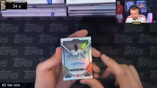00:17:42Ein Follower-Giveaway mit einem 20-Euro-Gutschein wird gestartet. Der Köln-Spot ist weg, der Wirt-Spot ebenfalls. Es werden die verbleibenden Spots aufgezählt, darunter Bochum, Bellingham, Union Berlin, Bayer Leverkusen und Hoffenheim. Es wird festgestellt, dass nur noch ein Spot bei Hashtag 1 verfügbar ist. Ein Leverkusen-Spot geht weg, bevor ein Zuschauer ihn sich sichern kann. Es wird klargestellt, dass es sich bei Bochum um zwei verschiedene Spots handelt (Hashtag 1 und Hashtag 2). Die Bayern Forever Box wird gezeigt, von der drei Stück vorhanden sind, die alle im Stream geöffnet werden. Es wird erwähnt, dass die Tier 1 Bundesliga Box Jude Bellingham als Rookie enthält. Der Streamer fragt, wann diese Box herauskam, und vermutet, dass es vor ihrer Zeit als Breaker war. Es wird erwähnt, dass ein Case aus sechs Boxen besteht und wie diese verpackt sind. Die Liebe zum Detail bei den Tier 1 Karten wird hervorgehoben und dass es drei Karten pro Box garantiert gibt, manchmal auch vier. Es wird die Anzahl der Boxen pro Case erläutert (Tier 1: 12 Boxen, Bayern: 12 Boxen). Es wird wiederholt, dass es noch 10 Spots gibt, darunter 6 bei Bayern, Dortmund-Bellingham, Union, Hoffenheim und Augsburg. Der Augsburg-Spot geht weg. Es wird mit Hashtag Uno (Tier 1) begonnen.