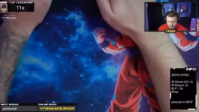 02:54:12Der Fußball-Podcast Vizca Cash wird vorgestellt und der Flagship-Break für den nächsten Tag angekündigt, da der heutige Break nicht durchgeführt werden darf. Ein Break mit einem Kunden namens Nico wird vorbereitet und durchgeführt. Gleichzeitig wird ein weiterer NBA-Spot (Hawks) freigeschaltet. Es werden die Preise für einen NBA Chrome Fullcase Break diskutiert und die Pixar-Spots weiter beworben.