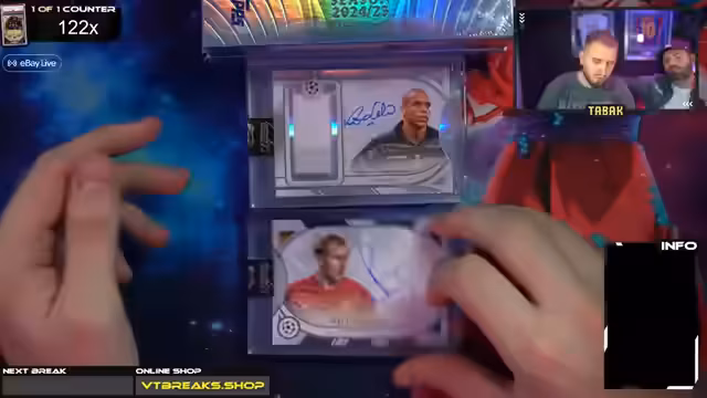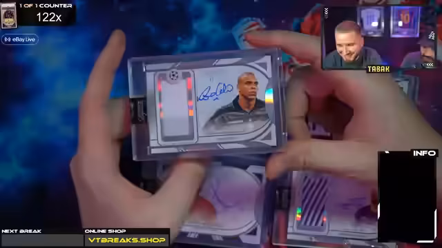 00:59:51Der Streamer bittet den Chat um eine Entscheidung bezüglich der Auswahl des nächsten Cases, da die Meinungen zwischen Option 1 und 2 geteilt sind. Eine Umfrage wird vorgeschlagen, um eine klare Entscheidung zu treffen. Nach der Abstimmung entscheidet sich der Chat für Case 1. Die erste Box wird für David geöffnet, und es wird eine Karte von Rivaldo (7/10) gezogen. Obwohl der Streamer zunächst auf R9 hoffte, zeigt er sich zufrieden mit der Rivaldo-Karte, die er als sehr sexy und mit einer der schönsten Unterschriften im Hobby beschreibt. Er erwähnt, dass er die Karte persönlich behalten würde, da sie ein wunderschönes Sammlerstück ist. Die Spannung steigt, da noch neun weitere Boxen geöffnet werden sollen.