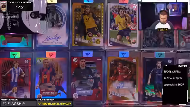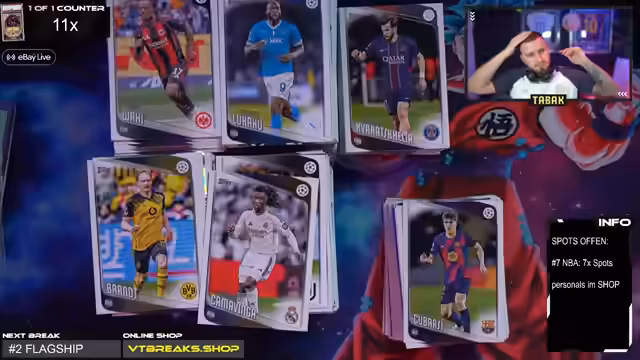 05:40:31Der Stream beginnt mit einer lockeren und selbstironischen Stimmung, in der der Streamer seine Müdigkeit und gelegentlichen Blackouts anspricht. Die Erwartungen für den Flagship-Release waren initial niedrig, da fälschlicherweise von nur drei Cases ausgegangen wurde. Die Stimmung dreht sich jedoch um, als der Streamer die ersten Boxen des Flagship-Release öffnet und die hohe Anzahl an Boxen bestätigt. Ein besonderes Highlight ist das neue Barca-Case, das Fans des FC Barcelona als Spot anpeilen können. Besonders begehrt sind die Pro-Case, die garantiert Autogrammkarten enthalten und oft seltene Karten wie One of Ones oder Booklets versprechen.