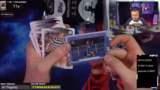 01:26:30Der Streamer erhält Unterstützung bei der Öffnung der Packungen von seiner Partnerin, die eineinhalb Cases vorbereitet. Dies wird im Stream live dokumentiert, wobei die Kamera auf sie gerichtet ist und sie die Kartenstapel an ihn weitergibt. Gleichzeitig wird eine philanthropische Geste erwähnt, bei der Base-Karten an ein Gehörlosen- und Behindertenzentrum gespendet werden, um die Freude an den Karten weiterzugeben.