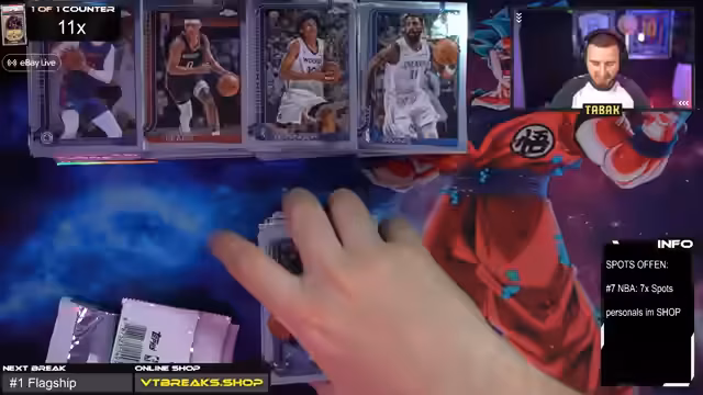 03:08:23Nach dem NBA-Break wird ein weiterer Flagship Case vorbereitet. Der Streamer unterhält sich dabei über persönliche Themen wie Kochen und den Mindestlohn in Deutschland. Während des Packens werden verschiedene Karten gezeigt und ihre Potenziale besprochen. Es wird über die Schwierigkeiten bei der Zollabwicklung für Redemption-Karten gesprochen und die Spannung auf zukünftige Breaks wie Midnight erwähnt.