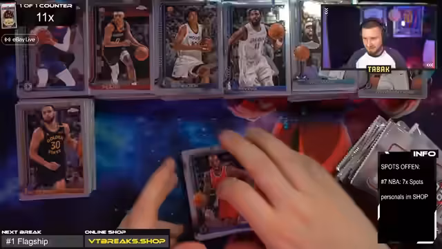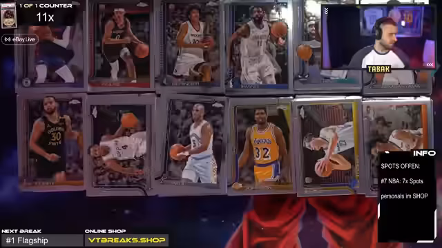 00:08:33Neben den Flagship Cases wird auch das Produkt OP14, basierend auf One Piece, im Stream geöffnet. Für den kommenden Montag oder Dienstag ist bereits ein weiterer Stream angekündigt. Auch NBA Break steht auf dem Programm, wobei nur noch wenige Spots verfügbar sind. Der Streamer plant, später Filler für die NBA-Breaks anzubieten, bei denen man sich um teure Spots wie die Lakers bewerben kann. Auch das neue Sapphire-Set für NBA wird thematisiert und als vielversprechend eingestuft.