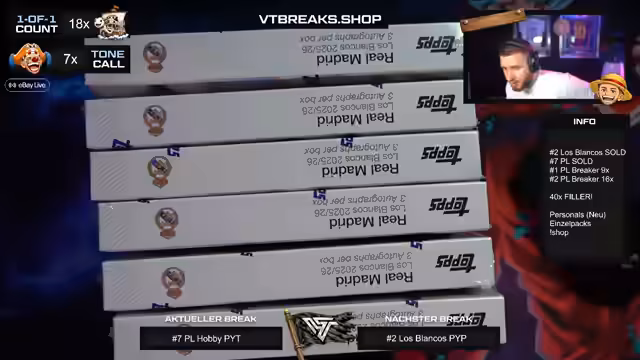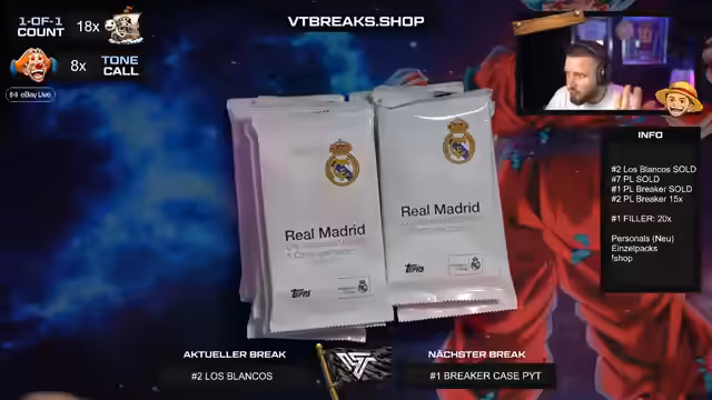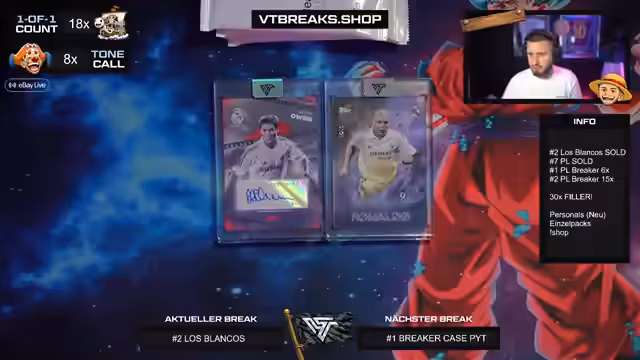 03:07:08Für den Abend werden Sportergebnisse prognostiziert, darunter ein 3:0-Sieg von Real Madrid und ein 2:1-Sieg von Borussia Dortmund. Die Streams der VT Breaks, insbesondere die 'Breaker Delight' und die 'One of One'-Boxen, werden als kommende Höhepunkte angekündigt. Der Fokus liegt auf der hohen Nachfrage und der erwarteten Spannung bei diesen Events.