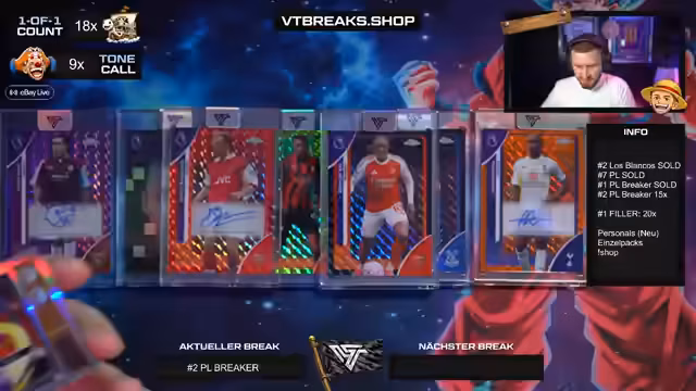 03:52:01Es findet die Ziehung der Spots für den Hashtag 1 Break statt. Dabei werden die für die Premier League Teams wie Chelsea, City, Newcastle, Sunderland und Crystal Palace zur Verfügung gestellten Spots verlost. Nach der Verlosung beginnt das Öffnen von sechs Boxen, dem sogenannten 'Breaker Light'. In den Boxen befinden sich Karten von Top-Spielern wie R9, Michael Owen, Özil und Seedorf, teilweise als Top-Load oder Auto.