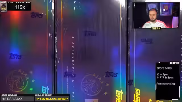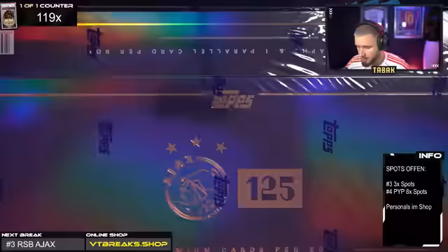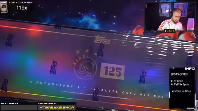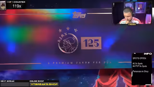 00:14:51Es wird das Ajax Amsterdam 125 Jahre Set vorgestellt, welches drei Boxen für einen „Pick Your Player“-Break enthält. Hier können sich die Teilnehmer einen Spot aussuchen, wobei Johann Cruyff noch verfügbar ist. Das Set beinhaltet verschiedene „Icon Moments“ und „Club Logo“-Karten, die alle von 1900 bis zur Gegenwart reichen. Es gibt auch Triple Autos mit Spielern wie Kanu, Litmanen und Seedorf. Der Streamer äußert seine Spannung auf das Set, da es sich um ein sehr seltenes und aufregendes Produkt handelt, ähnlich den bekannten AC Mailand und Barca Triple-Sets. Zudem wird eine „Personal Box“ für diejenigen angeboten, die eine ganze Box erwerben möchten, wobei der Preis als „absolut geil“ beschrieben wird.