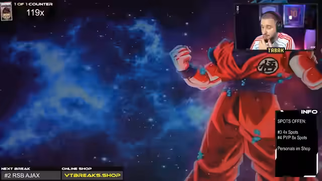 02:28:29Der Stream konzentriert sich auf die finalen Spots des Ajax 125-Jahre-Breaks. Nachdem acht Spots im Lostopf für eine besondere Karte platziert wurden, wird der Gewinner ausgelost. Gleichzeitig wird ein Filler-System mit 10 Spots gestartet, um die verbleibenden Plätze zu füllen. Die letzten beiden Spots sind Teil einer Verlosung, bei der Platz eins einen Dual-Auto-Spot und Platz zwei einen Club-Logo-Spot erhält. Es werden noch verbliebene Filler-Spotter aktiviert, um den Break abschließen zu können.