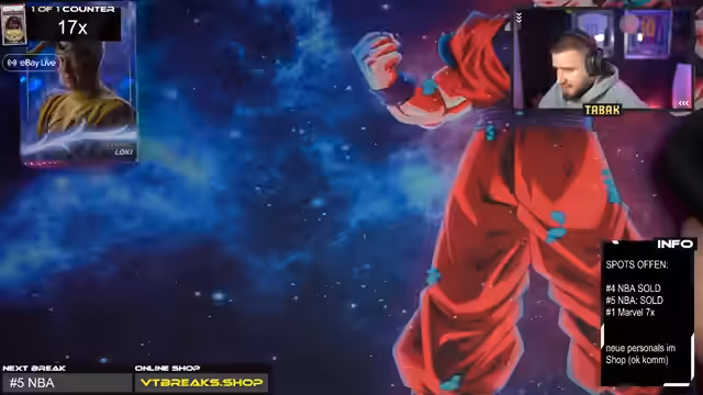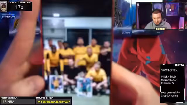 03:30:49Der Stream beginnt mit der Organisation eines neuen Breaks. Der Streamer und sein Team holen sich Chat-Mitglieder für die Teilnahme, um das Team vervollständigen zu können. Nach der Zusammenstellung geht es direkt los. Es fällt der Name Adrian, dessen Box als Nächstes geöffnet wird. Die Eröffnung seiner Box ist ein voller Erfolg, da der Streamer hier sofort sehr gute Karten findet. Weitere Teilnehmer namens Alexander, Rupert und Dominik werden begrüßt und für die anstehenden Breaks aufgenommen.