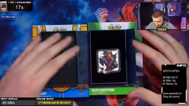 00:36:40Die vorher angekündigte Überraschung wird gelüftet, wobei es sich um limitierte, lizenzierte Marvel Silber-Münzen handelt. Der Host präsentiert verschiedene Varianten, darunter "The Amazing Spider-Man" mit zwei Unzen Silber sowie Ausgaben zu "Sheriff Woody" und "Buzz Lightyear" aus Toy Story mit je einer Unze. Er berichtet von den Schwierigkeiten bei der Beschaffung und betont, dass diese exklusiven Stücke direkt nach der Vorstellung im Shop angeboten werden. Die Münzen werden als wertige Sammlerobjekte präsentiert, die nicht nur für Kartenliebhaber, sondern auch für Nerd-Kultur-Fans interessant sind.