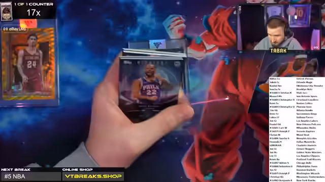 00:46:36Nach der Vorstellung der Münzen beginnt der erste NBA Midnight Break, bei dem die Teams per Zufall an die Teilnehmer vergeben werden. Während des Breaks kommt die Unterhaltung auf das Talent des jungen Fußballspielers Vujkovic zu sprechen, das der Host als "generational talent" bezeichnet. Parallel dazu tauschen sich die Zuschauer und der Host über technische Probleme mit der Internetverbindung aus, wobei trotz Cat7-Kabel und hoher WLAN-Geschwindigkeit am PC nur geringe Übertragungsraten gemessen werden. Der Break wird trotz der Diskussionen ordnungsgemäß durchgeführt und die gezogenen Karten präsentiert.