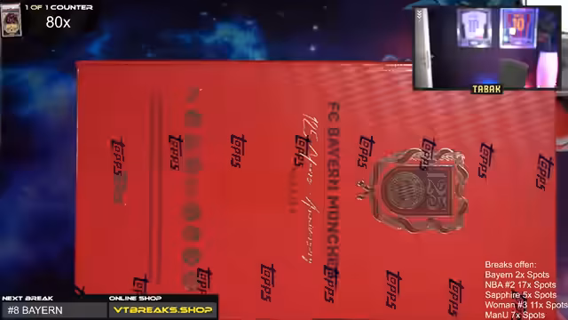 01:35:49Nach den NBA-Boxen wechselte der Fokus komplett zu FC Bayern München. Der Streamer verkündete den Start von mehreren Breaks, darunter Hashtag 7 und später Hashtag 8, jeweils mit reduzierten Preisen und Sonderaktionen. Die Namen der Inhaber der Spots, wie Jagmo, Sahin und Lennart, wurden vorgelesen und deren speziellen Karten, wie Klose-Podolski oder Gerd Müller-Harry Kane, erwähnt.