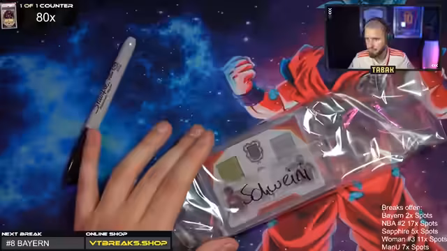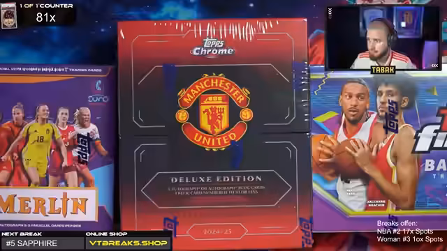 06:09:16Nachdem die bisherigen Breaks erfolgreich waren, wird eine besonders teure und begehrte Manchester United Night Box geöffnet. Diese Box wird aufgeteilt in mehrere Spots für verschiedene Community-Mitglieder, darunter der wiederkehrende Gast Prosi. Der Streamer erklärt detailliert den Inhalt und die Zusammensetzung der Box, welche mehrere Autogramme und Diamanten-Karten enthält. Die Eröffnung der Box für Prosi ist ein lang erwartetes Highlight und wird mit Spannung verfolgt.