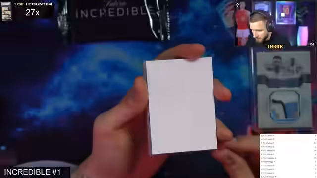 00:18:21Ein Highlight des Streams ist die Eröffnung einer Futera-Incredible-Box, die weltweit zum ersten Mal im Stream geöffnet wird. Aufgrund des hohen Wertes wird eine spezielle Verlosung für die zwölf Boosterpacks der Box durchgeführt. Jeder der acht Breaker erhält zufällig zwei Packs. Während des Öffnens des ersten Packs für den Breaker Julian S. wird ein extrem seltener und wertvoller Gold-Redemption-Hit gezogen. Es handelt sich um eine 'Solid Gold'-Karte, eine von nur zwölf weltweit, die einen sehr hohen materiellen Wert hat und für deren Einlösung bei Futera spezifische Verfahren nötig sind.
