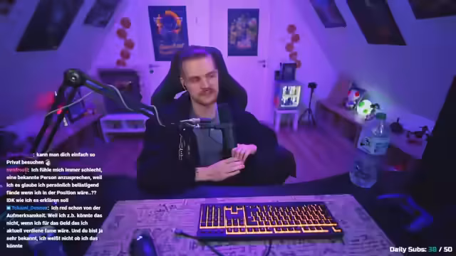 00:52:27Der Streamer gab an, dass ihm Fame und öffentliche Bekanntheit heute nichts mehr bedeuten, da sein Selbstwertgefühl nicht mehr davon abhängt. Er könne heute auf der Straße erkannt werden, sehe dies aber nicht als Problem. In der Vergangenheit habe es viel Bestätigung gegeben, heute genieße er Anonymität eher. Zudem sprach er über die Reduktion politischer Inhalte im Stream. Er habe bewusst weniger darüber gesprochen, um einen "Safe Space" zu erhalten und keine "bad Vibes" zu verbreiten, dennoch sei ihm wichtig, hin und wieder auf Wahlen und die Bedeutung der Demokratie hinzuweisen.