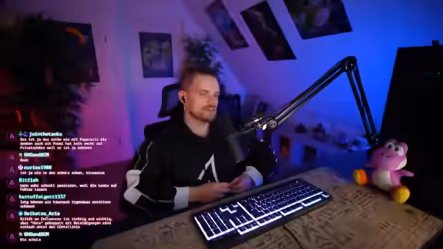 00:06:00Der Stream beginnt mit technischen Anpassungen des Setups. Das Bild wurde auf 4K-Upgrades geändert, was zu 30 FPS führt, was der Streamer aber als unkritisch ansieht. Die Raumgestaltung wurde angepasst, mit einer weiterwinkligen Kamera und neuen Lichtverhältnissen für eine bessere Gesichtsausleuchtung. Nach technischen Tests und der Einstellung der Mikrofonlautstärke stellt er fest, dass alles nun funktioniert und begrüßt die Zuschauer im Chat.
