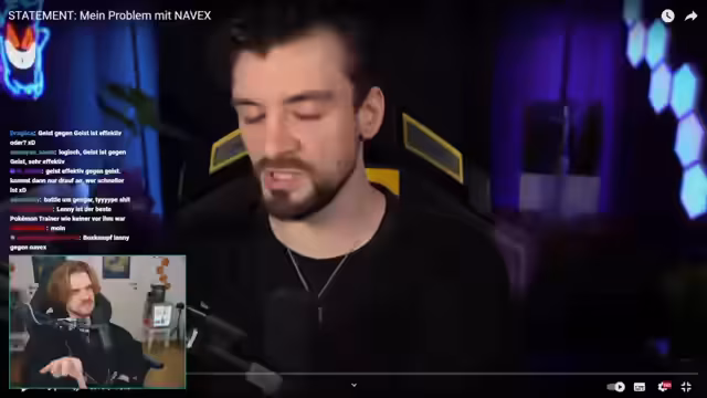 01:32:13Navex hatte Lenny vorgeworfen, zu hetzen, woraufhin Lenny sein Video zu Phoebe löschte. Der Streamer fand das Video von Lenny über Phoebe jedoch nicht so schlimm und hatte nicht den Eindruck, dass Lenny hetzt. Navex verteidigt Phoebe sehr stark, was der Streamer als seine persönliche Meinung akzeptiert. Anschließend wird das Video von Lenny mit dem Titel 'Statement: Mein Problem mit Navex' betrachtet. Im Raum steht die Frage, wer den Gengar als Markenzeichen nutzen darf, falls Lenny gegen Narwigs verliert. Lenny erklärt in seinem Video, dass er noch einmal über Navex' Aussagen nachgedacht hat und ihm mit ein, zwei Aktionen über die Stränge geschlagen ist. Der Streamer gesteht, das Video von Navex gegen Lenny nicht gesehen zu haben und nur mitbekommen zu haben, dass Lenny Hetze vorgeworfen wurde.