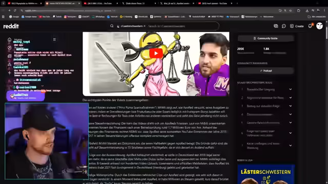 00:17:10Ein zentraler Punkt der Themen ist die wiederholte Kritik von Mimi an ApoRed. Der Streamer verteidigt Mimi vehement, nachdem von Papa Platte und anderen der Vorwurf erhoben wurde, Mimi solle die Videos gegen ApoRed einstellen. Er argumentiert, dass die Vorfälle aktuell und strafrechtlich relevant sind, inklusive Steuerhinterziehung in Höhe von 1,7 Millionen Euro und einem Haftbefehl. Der Streamer prophezeit, dass ApoRed trotz der Skandale bald wieder mit großen Streamern auf Twitch streamen werde, was er als Normalisierung und Schlag ins Gesicht der Opfer betrachtet.