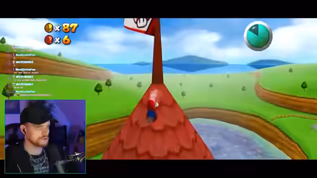 02:15:32Nach dem Tutorial gelangt der Streamer ins erste vollwertige Level, 'Bob-Omb Battlefield'. Auch hier ist die Umgebung verändert und die Gegner, insbesondere die Bob-Oms, sind deutlich gefährlicher. Der Streamer nimmt die Wing-Cap auf und fliegt zur fliegenden Insel, um dort weitere Sterne zu sammeln. Er ist fasziniert von der grafischen Qualität des Hacks, welche die eines Wii-Remakes anpeilt, und stellt fest, dass es sich trotz der neuen Optik und der veränderten Charaktere authentisch wie ein Mario 64-Spiel anfühlt.