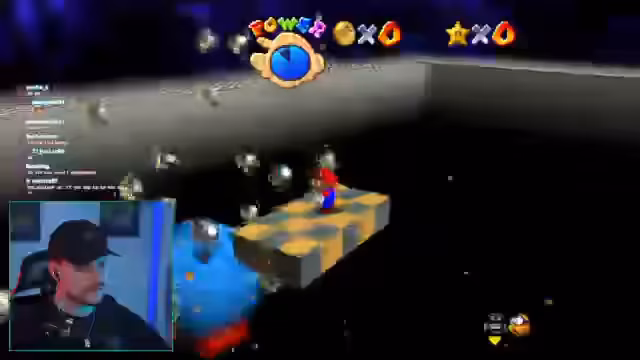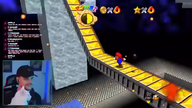 02:00:45Nachdem Schimptex den Anfang von Timos Level gemeistert hat, gelangt er zu einer Passage mit sich bewegenden Thwomp-Blocken. Auch hier braucht er mehrere Versuche, um den richtigen Moment für den Sprung zu finden. Gleichzeitig stolpert er über eine Münze, die ihm einige Leben zurückgibt und ihm Luft verschafft. Der Streamer wundert sich über die unvorhersehbaren Mechaniken und kommt immer wieder in kurze Rage-Zustände, während der Chat über das Niveau diskutiert und teilweise die Meinung vertritt, dass das Level zu schwergewählt sei.