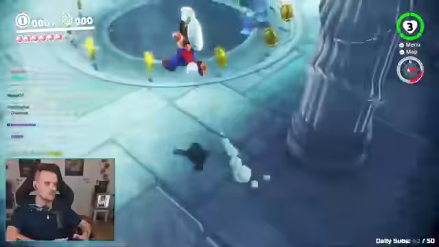 02:38:39Der Streamer kämpft mit dem Level 'Wodit', da es viele gelbe Elemente enthält. Unsichtbare Münzen sind erlaubt, sichtbare jedoch nicht. Es gibt Schwierigkeiten mit der Steuerung und der Interaktion mit Objekten im Spiel, was zu Frustration führt. Es wird überlegt, ob bestimmte Aktionen im Spiel als Regelverstoß gelten, z.B. das Berühren von gelben Punkten auf Blumen. Der Chat diskutiert über die Gültigkeit solcher Aktionen. Der Streamer versucht, einen bestimmten Mond zu erreichen, was sich als riskant erweist. Es wird festgestellt, dass die 'Fusi-Area' aufgrund der vielen Münzen zu gefährlich ist.