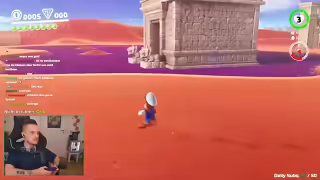 00:34:35Der Streamer startet das Spiel Mario Odyssey und beginnt mit der Aufnahme eines YouTube-Intros. Er erklärt die Regeln der Challenge, bei der die Farbe Gelb nicht berührt werden darf. Es wird klargestellt, dass es sich um echtes Gelb handeln muss und nicht um Orange, Rot oder Braun. Effekte wie Sparkle-Effekte um die Käppi sind von der Regel ausgeschlossen. Eine wichtige Ausnahme besteht darin, dass gelbe Objekte berührt werden dürfen, wenn dies notwendig ist, um im Spiel voranzukommen. Münzen dürfen nicht eingesammelt werden, da sie gelb sind, was die Challenge automatisch zu einer No-Coin-Challenge macht. Der Chat stimmt darüber ab, ob unsichtbare Münzen zählen sollen oder nicht. Der Streamer startet ein neues Spiel und erklärt, dass das erste Level relativ grau ist und man auf das gelbe Schild achten muss.