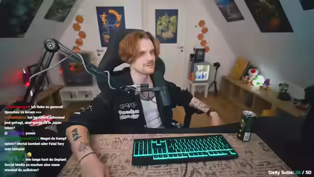 00:05:25Nach einer Pause geht der Streamer auf aktuelle Themen ein. Er äußert sich über das ungewöhnlich warme Wetter und seine Verwirrung darüber, warum einige Menschen noch Winterjacken bei über 20 Grad tragen. Er teilt persönliche Gewohnheiten bezüglich der Kleidung und seines Kälte-/Schwitzempfindens und erzählt von einer kürzlichen, mysteriösen Erkrankung, die Symptome wie Schüttelfrost, Appetitlosigkeit und Kopfschmerzen umfasste, die er als möglichen Magen-Darm-Infekt einstuft.
