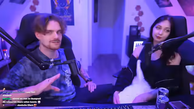 02:19:59Es wird über den geringen Alkoholkonsum gesprochen und wie man sich gegenseitig im Alltag unterstützt. Es wird betont, dass die Beziehung ausgewogen ist, aber es nie eine perfekte 50-50-Aufteilung gibt. Maracuja-Saft wird als Lieblingsgetränk erwähnt. Es wird überlegt, ob man mal zusammen nach Kasachstan reisen soll. Eine Nachricht von einem Zuschauer wird vorgelesen, der sich für den Support in schweren Zeiten bedankt. Es wird über das Kennenlernen über Social Media und Dating-Apps gesprochen und betont, dass es nichts ist, wofür man sich schämen muss. Es wird humorvoll darüber gesprochen, wen man auf Dating-Apps nach rechts swipen würde und ob der Partner einen lila Anzug auf der Hochzeit tragen soll.