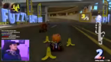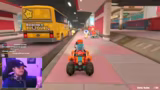 03:04:38Der Streamer erkundet die Open World von Mario Kart World und stößt auf das Phänomen, dass NPC-Fahrer wie Baby Rosalina sich wie echte Spieler verhalten. Er vermutet, dass Nintendo die NPCs deaktiviert, sobald man einen fahrbaren LKW erhält, um zu verhindern, dass diese überfahren werden. Dies führt zu einem langen Versuch, einen LKW zu finden und zu fahren, um dieses Verhalten zu testen. Nachdem er den LKW endlich gefunden hat und fährt, stellt er fest, dass tatsächlich keine NPCs mehr in der Nähe sind, was den Mythos bestätigt.