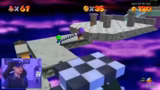 02:07:02Das Team beginnt mit der Mission 'Buu' im Bob-Omb Battlefield. Aufgrund der Kette können alle Teilnehmer gleichzeitig auf dem Balkon kämpfen, was das Besiegen von Buu erleichtert. Die größte Herausforderung ist jedoch, den Stern einzusammeln, da die Spieler dafür auf das Dach der Festung klettern müssen, was als sehr schwierig angesehen wird. Die Strategie besteht darin, die Kette als Vorteil zu nutzen, falls einer der Spieler herunterfällt, um schnell wieder hochzukommen.