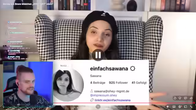 00:49:17Der Streamer wendet sich einem neuen, kontroversen Video von Savannah zu, in dem sie Henna von „brave Mädchen“ kritisiert. Er schaut sich die Reaktion von Henna auf das Video an und analysiert deren Antwort. Er kritisiert Hannas Verhalten als schwach und unprofessionell, da sie in ihrer Reaktion auf oberflächliche Äußerungen wie das Aussehen oder die Relevanz des Kritikers eingeht, anstatt sich inhaltlich mit der Kritik auseinanderzusetzen. Der Streamer verteidigt seine ursprüngliche Kritik an Henna als berechtigt und betont, dass öffentliche Personen, die sich moralisch positionieren, auch hinterfragt werden dürfen.