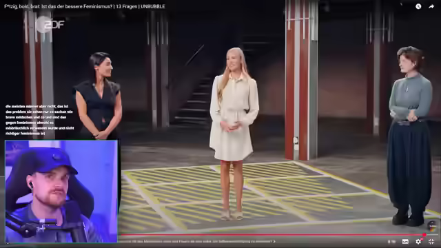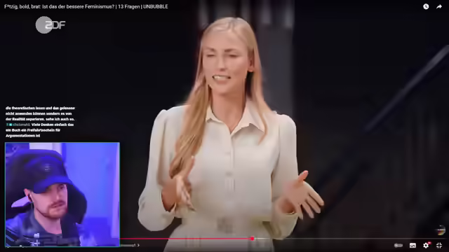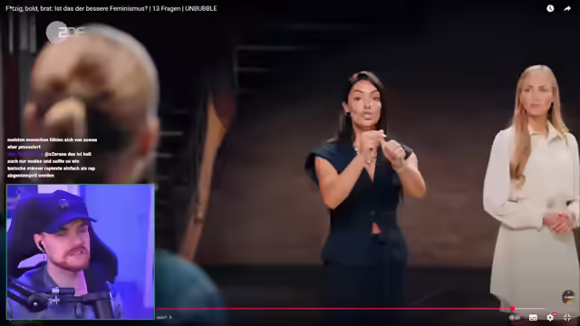 02:10:42Es folgt eine Ankündigung, sich einem anderen Thema zuzuwenden, nämlich Feminismus, und auf ein Video von Unbubble zu reagieren. Es wird die Fähigkeit betont, die eigene Meinung so zu äußern, dass sie auch bei Andersdenkenden nachvollziehbar ist. Es wird die Befürchtung geäußert, dass ein Reaction-Video zu diesem Thema viele Dislikes hervorrufen könnte, aber es wird betont, dass jeder seine eigene Meinung haben darf. Es wird kritisiert, dass ein zuvor besprochenes Video den eigenen Standpunkt erst ganz am Ende genannt hat und somit suggeriert, dass alles an True Crime problematisch sei. Es werden Beispiele für problematische Einzelfälle im True-Crime-Bereich genannt, wie eine Podcasterin, die einen Täter auf die Bühne holte, oder eine TikTokerin, die Hetze gegen eine Senatorin betrieb. Es wird jedoch argumentiert, dass diese Einzelfälle nicht bedeuten, dass True Crime per se schlecht ist. Es wird eine Pinkelpause angekündigt, bevor mit dem nächsten Video begonnen wird. Nach der Pause wird die Katze Lucy vorgestellt und ein möglicher Titel für ein Katzen-ASMR-Video vorgeschlagen. Anschließend wird das Thema auf Feminismus geändert und die Frage aufgeworfen, ob es den "Fortsägen-Feminismus" braucht.