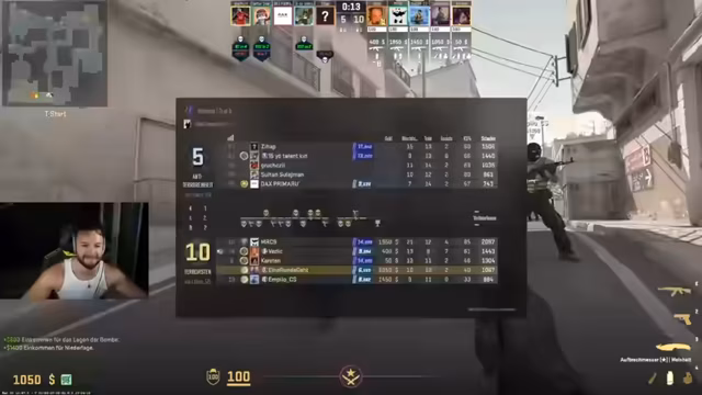 00:02:08Der Streamer begrüßt seine Zuschauer zum 'Samstag Mittag Reaktor' auf inscope21.tv und stellt fest, dass er an einem Samstagnachmittag live ist, weil er ein Vollbluthustler ist. Es werden Donations erwähnt, die deaktiviert sind. Der Streamer plant, einen Kernreaktor zu entwirbeln und Uran zu nutzen, um auf YouTube die Reaktionsebene zu verbessern. Danach ist Counter-Strike geplant, da er süchtig geworden ist. Er hat sich gestern ein Messer in CS gekauft.