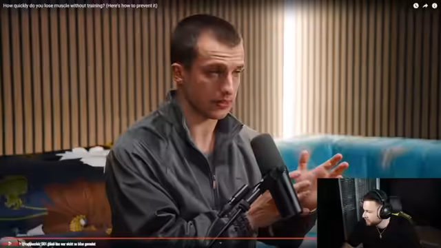 00:42:14Der Streamer reagiert auf ein Video von Tim über Training und Muskelabbau. Das Video erklärt, wie viel und wie schnell man Muskeln verliert, wenn man mit dem Training aufhört. In den ersten zwei Wochen ist kein objektiver Muskelaufbau feststellbar, da der Körper Wasser aus der Muskulatur spült. Nach drei Wochen beginnt echter Muskelabbau. Der Streamer betont die Bedeutung von Training für die Gesundheit, nicht nur für die Optik, und wie das Herz-Kreislauf-System von einer regelmäßigen Bewegung profitiert.