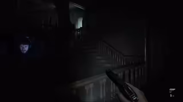 01:15:21Eine Einblendung erzählt die Geschichte des fiktiven Hotels Reanwood seit 1928. Die Spielfigur sucht das Zimmer 204 auf und wird durch die Realistische Darstellung und die zittrige Stimme der Figur erschreckt. Der Streamer kritisiert die Steuerung und fragt, warum er die Waffe nicht ziehen kann, während er gleichzeitig die aufregende Geräuschkulisse des Spiels lobt. Er muss auch die Sensibilität der Steuerung anpassen, um besser zurechtzukommen.
