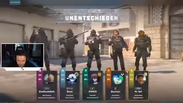 07:19:33Die Spieler betonen die Wichtigkeit des bevorstehenden Spiels, das über den Einzug ins Finale entscheidet und einen Gewinn von 3.000 Euro pro Kopf bedeutet. Trotz des hohen Einsatzes wird versucht, den Druck zu minimieren. Die Teammitglieder einigen sich auf eine Strategie für den Spielbeginn, bei der sie verschiedene Richtungen einschlagen und auf Neife setzen. Während des Spiels kommt es zu unerwarteten und unglücklichen Situationen, wie unhittbaren Gegnern, die zu Diskussionen und dem Wunsch nach Clip-würdigen Momenten führen. Die Spieler ermahnen sich gegenseitig, sich nicht auf das Geld oder den Finaleinzug zu konzentrieren, sondern auf das Erreichen von 13 Punkten im Spiel. Es werden verschiedene Taktiken besprochen und ausprobiert, darunter das Rushen von B, das Kontrollieren von Schlüsselpositionen und der Einsatz von verschiedenen Waffen und Ausrüstungsgegenständen. Die Kommunikation ist dabei entscheidend, um sich gegenseitig zu unterstützen und auf Bedrohungen aufmerksam zu machen. Trotz einiger Rückschläge und Fehler versuchen die Spieler, positiv zu bleiben und sich auf ihre Stärken zu konzentrieren.