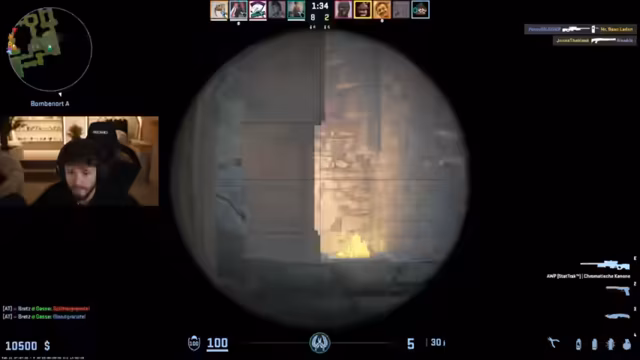 03:11:04Nach dem erfolgreichen Overwatch-Segment wechselte der Streamer zu Counter-Strike, um einige Runden zu spielen. Er betonte, dass er in dem Spiel „ arschschlecht “ ist und suchte aktiv nach Tipps im Chat. Er beschrieb seine Schwierigkeiten, insbesondere beim Crosshair-Placement und der Taktik, und verglich die Spielweise mit Call of Duty. Mit einem Mitspielen namens Lena absolvierte er Runden auf der Map Mirage, wobei er versuchte, seinen Rang zu verbessern und auf neue Waffen zu achten, während er sein Menü als unzuverlässig beschrieb.