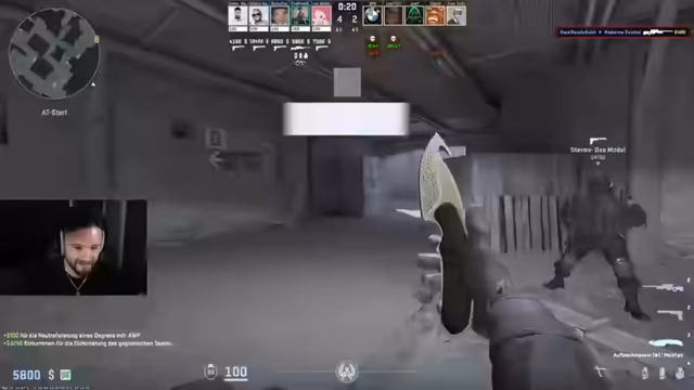 04:38:35Der Stream beginnt mit einer dynamischen Counter-Strike-Szene, in der der Streamer mit seinen Mitspielern koordiniert agiert. Es werden Taktiken wie ein Play über die falsche Mitte oder der Versuch, einen Gegner bei der Bombe zu überraschen, besprochen und umgesetzt. Die Kommunikation ist entscheidend, wobei die Angriffe mal erfolgreich verlaufen und mal scheitern, was zu einer ernüchterten Analyse der Runde führt. Der Fokus liegt auf präzisen Positionierungen und schnellen Reaktionen auf gegnerische Aktionen, wie etwa einem Jiggle-Peak.