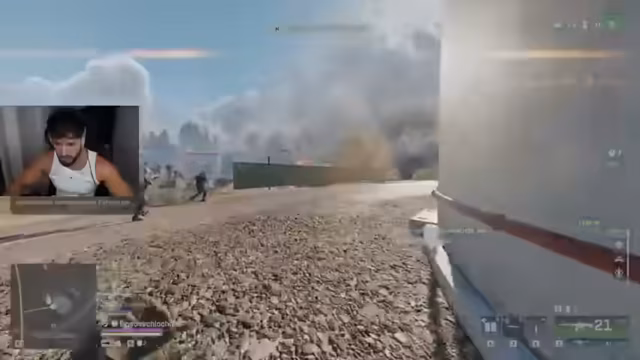 01:36:04Das Team trifft auf einen feindlichen Panzer, was für große Aufregung sorgt. Der Streamer kritisiert, dass Panzer in diesem Spielmodus nichts verloren haben, da sie den Spielern im Inneren zu viel Schutz bieten. Er entdeckt jedoch Raketenwerfer als Anti-Vehikel-Option. Während des Kampfes gegen den Panzer und andere Teams treten weiterhin Probleme mit der Tastenbelegung auf, insbesondere beim Anlegen von Platten. Der Streamer beschwert sich auch darüber, dass sein Charakter aufhört zu sprinten, wenn er die Tab-Taste drückt, um Statistiken einzusehen. Trotz der Herausforderungen und der technischen Mängel bleibt die Stimmung angespannt und das Team versucht, die Zone zu erreichen und die verbleibenden Gegner zu eliminieren.
