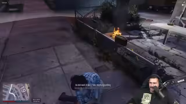 05:14:48Der Streamer wechselt das Thema und startet ein neues Rollenspiel-Spiel. Zusammen mit seinen Freunden Gigant und Roat steigt er in einen Wohnwagen, um eine Reise durch eine postapokalyptische Welt anzutreten. Das Spiel erfordert Teamarbeit, da der Wagen oft repariert werden muss und sich die Charaktere in gefährlichen Situationen befinden. Die Freunde müssen Scrap sammeln, Checkpoints erreichen und den Wohnwagen am Laufen halten, wobei sie ständig auf neue Hindernisse und Gefahren stoßen.