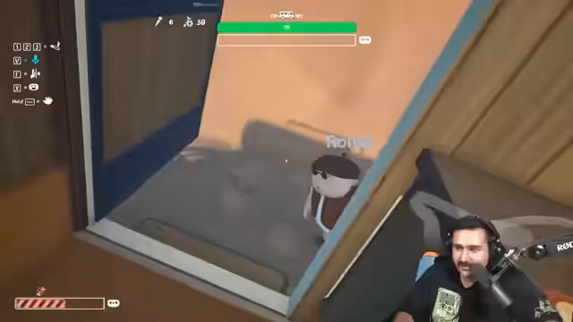05:50:32Nachdem das Fahrzeug instabil geworden ist, versucht einer der Teilnehmer, es zu betreten, um Reparaturen vorzunehmen. Es kommt zu technischen Schwierigkeiten und der Streamer muss von außen helfen, den Charakter ins Fahrzeug zu buggen. Anschließend wird die Reparatur der Reifen und der Karosserie mit einem Hammer begonnen, während ständig auf die Anzeige geachtet wird.