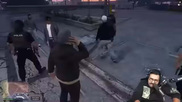 04:22:34Die Situation eskaliert weiter, als Herr Salami droht, Fatma zu Hause zu 'zerstören'. Er lehnt weitere Therapiesitzungen ab und verlässt den Raum, um eine Granate zu holen. Die Idee ist, ein dramatisches Ende des Rollenspiels zu inszenieren, bei dem er die Granate wirft und dabei sagt: 'Entweder gehörst du mir oder du gehörst der Erde.' Ein Taxi wird gerufen, um zum Waffenladen zu fahren und die Granate zu besorgen. Auf dem Rückweg zum Krankenhaus werden sie von der Polizei angehalten. Trotz der Festnahme versucht Herr Salami, seine Rolle aufrechtzuerhalten und fragt nach der Performance. Die Polizei nimmt ihn fest und befragt ihn zu den Ereignissen, während er eine Zigarette fordert. Die Situation bleibt chaotisch, und es wird über mögliche Metagaming-Vorfälle im Chat diskutiert.