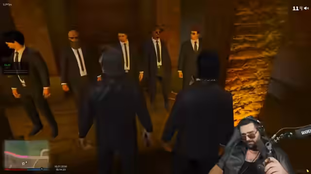 05:37:34Die Situation eskaliert von einem Konflikt zwischen zwei Parteien zu einem potenziellen großen Krieg, der den gesamten Server betrifft. Die beschuldigte Partei mobilisiert ihre Verbündeten im Norden und ruft andere mächtige Familien und Allianzen wie Luciano, Flint und Body Love zu einem gemeinsamen Vorgehen gegen den Süden auf. Das Ziel ist, ein Zeichen gegen eine vereinbarte Attacke mehrerer südlicher Familien zu setzen und für das Ansehen und die Ehre der Anzugträger zu kämpfen.