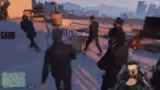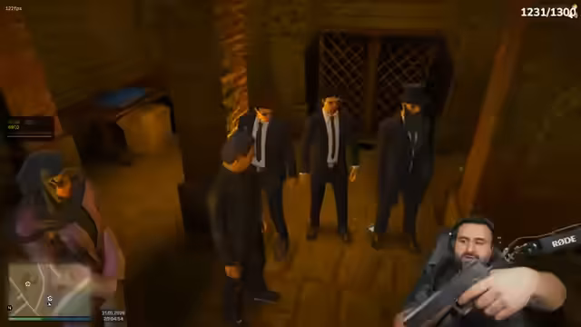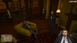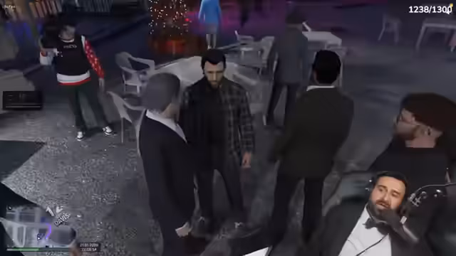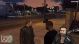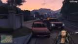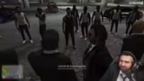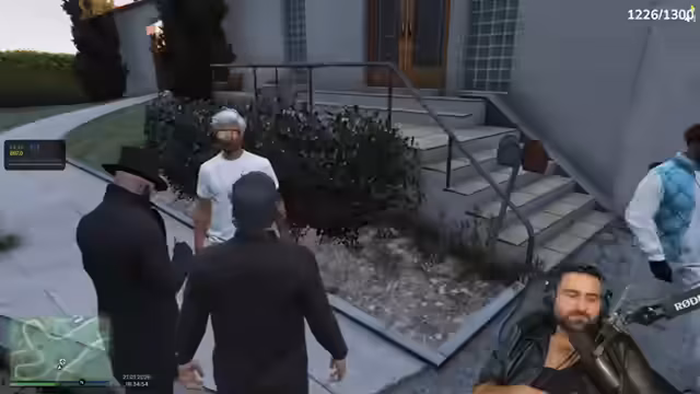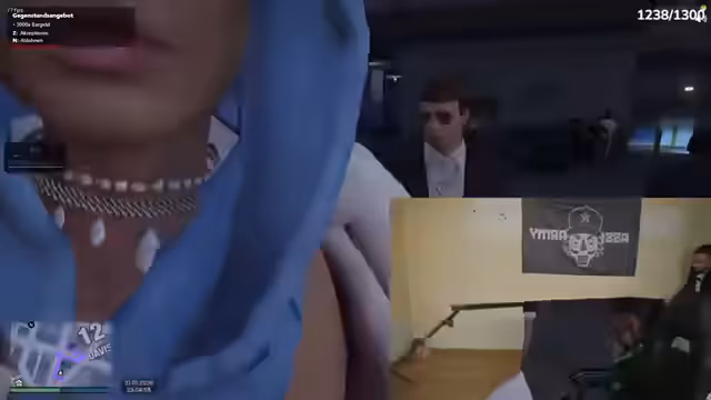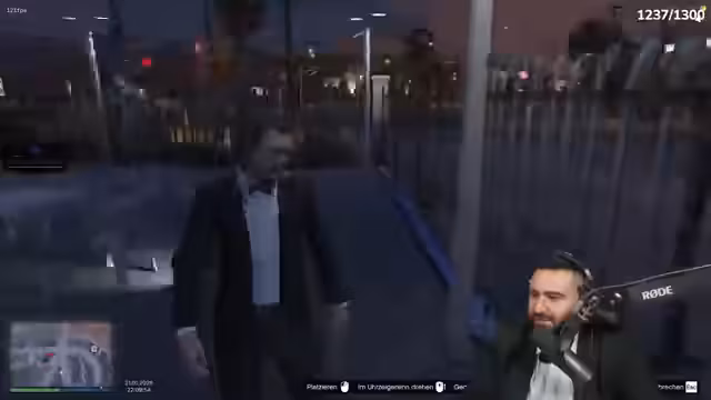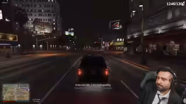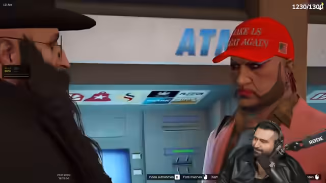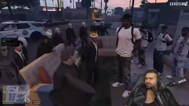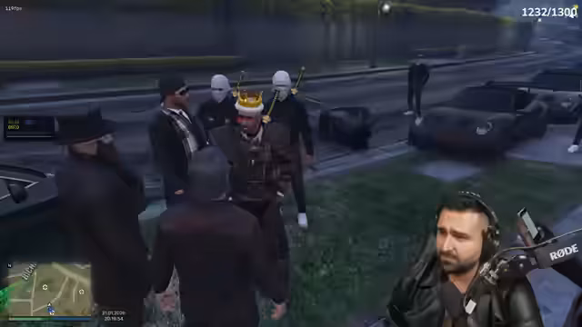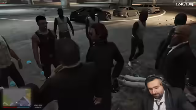 01:38:35Nach der gescheiterten Konfrontation fährt die Gruppe weiter und wird von der Polizei gestoppt. Es kommt zu einem Streitgespräch, weil ein Kollege den Streamer beleidigt hat. Der Kollege wird daraufhin festgenommen. Anschließend muss der Streamer auch noch 'Herr Rosenstein' verhaften lassen, da er sich nicht entschuldigt. Danach fährt die Gruppe zur Bank, um mit 'Helmut' über eine Geldanlage zu sprechen, Rosenstein wird jedoch aus dem Auto geholt.