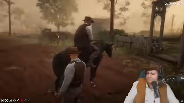 03:24:21Der Stream beginnt in der Stadt Valentine, wo der Protagonist Mario Redington als Neuling auffällt und von den NPCs als Landei bezeichnet wird. Er erkundet die Umgebung, sucht nach einem Waschgelegenheit und interagiert mit einem NPC, um Bier zu kaufen. Dabei kommt es zu kleinen Missverständnissen und humorvollen Dialogen, die die Atmosphäre des Western-Rollenspiels etablieren. Er versucht, ein Pferd zu beschaffen und wird auf den Kauf eines Tennessee Walkers aufmerksam, der 88 Dollar kostet, was sein Budget zunächst sprengt.