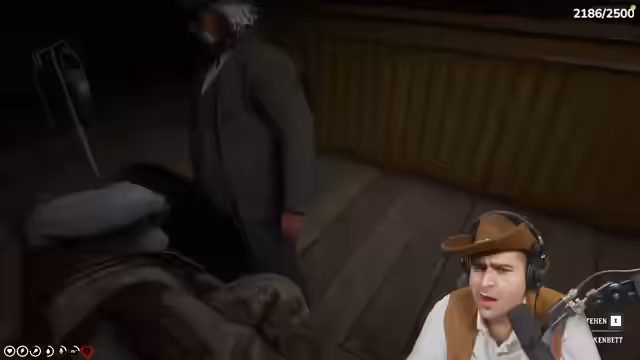 03:15:45Nach der erfolgreichen Rasur betritt der Streamer den neuen Red Dead Redemption 2 Server, um sein Cowboy Rollenspiel (RP) fortzusetzen. Sein Charakter, ein "altes Mann" namens Miguel, trifft in Valentine auf andere Spieler. Er inszeniert eine Szene, in der er um Arbeit bittet und einen verdrehten Arm vortäuscht, um Mitleid zu erregen. Das RP beginnt mit Interaktionen in der Stadt, wobei er versucht, ein Pferd zu bekommen und Geld zu verdienen, während er seinen Charakter authentisch darstellt und in die Rolle eintaucht.