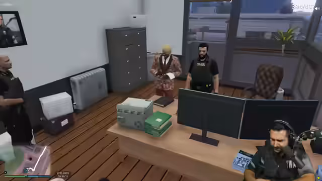 05:33:25Die Eskalation nimmt weiter zu, als der Streamer Zugang zu Dienstwaffen, Schutzwesten und Munition erhält. Nachdem er versehentlich eine zweite Waffe findet, erhält er eine weitere. Gleichzeitig kommt es zu einem bewaffneten Konflikt, bei dem Helmut angeblich Möbel stiehlt und der Streamer daraufhin mehrere Warnschüsse abfehlt, um die Täter zu stoppen und seine Position zu sichern.
