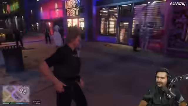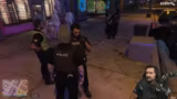 07:08:19Nach einer Unterbrechung, in der der Streamer sich über die vielen Spenden beschwert, beginnt der Streifendienst. Es gibt verschiedene Patrouillenfahrten, während der Streamer immer wieder auf die Aufforderung hinweist, keine provokativen Aktionen zu starten und friedlich durch die Stadt zu fahren. Die Fahrt wird durch eine Polizeikontrolle unterbrochen, bei der eine Gruppe maskierter Personen durchsucht wird, was zu einem kurzen Dialog führt.
