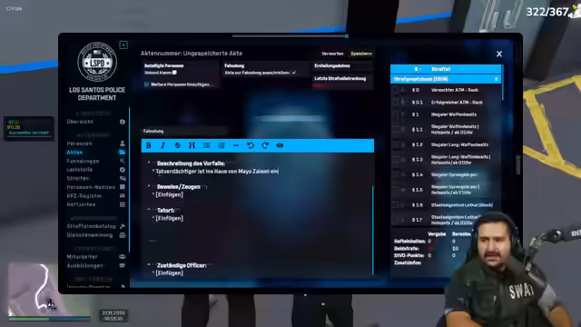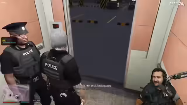 01:49:14Der Streamer spricht mit einem Lieutenant über das Fehlverhalten von Jackson Daniel, der angeblich korrupt ist und einen Kriminellen (Helmut Kamm) laufen ließ, obwohl der Streamer als Senior Officer die Festnahme angeordnet hatte. Der Lieutenant, der sich als Vater von Jackson Daniel herausstellt, ist überrascht und verspricht, mit seinem Sohn zu sprechen. Der Streamer besteht jedoch darauf, direkt zu Herrn Hoffmann zu gehen, da er die Situation als zu ernst empfindet. Er legt Beweise vor, die zeigen, dass Helmut Kamm Vandalismus betrieben und eine Granate geworfen hat. Der Lieutenant erklärt dem Streamer, wie er eine Fahndungsakte erstellen kann, um Helmut Kamm zur Fahndung auszuschreiben. Der Streamer nutzt diese Gelegenheit, um alle Vorfälle detailliert in der Akte zu vermerken, darunter Vandalismus, Granatenwurf, Flucht und das Parken eines Hubschraubers auf der Straße. Er ist entschlossen, Helmut Kamm und Jackson Daniel zur Rechenschaft zu ziehen und ihre Kündigung zu erwirken.