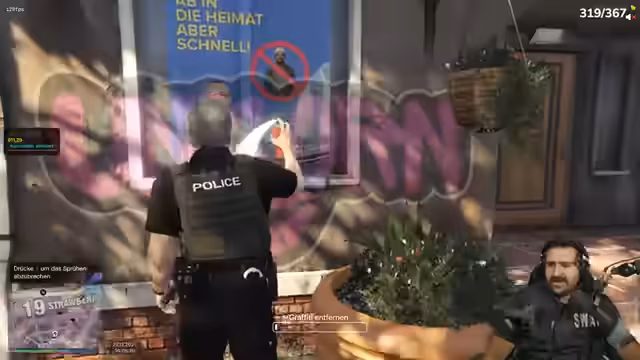 02:04:19Der Streamer und sein Streifenpartner halten Helmut Kamm bei einer allgemeinen Verkehrskontrolle an. Helmut Kamm wird als derjenige identifiziert, der für Vandalismus, Granatenwurf und andere Vergehen gesucht wird. Die Situation eskaliert schnell, als der Streamer Helmut Kamm beleidigt und ihn zur Festnahme auffordert. Helmut Kamm weigert sich, den Anweisungen zu folgen und fordert einen Supervisor. Der Streamer ist frustriert, dass er sein Mikrofon vergessen hat und somit wichtige Beweise nicht aufzeichnen konnte. Er ist entschlossen, Helmut Kamm zur Rechenschaft zu ziehen und plant, ihn für alle Vergehen zu belasten. Die Situation wird durch die fehlende Ausrüstung des Streamers erschwert, was zu einer Verzögerung bei der Festnahme führt. Der Streamer ist wütend über die Inkompetenz seines Partners und die Tatsache, dass er erneut zurückfahren muss, um sich auszurüsten.