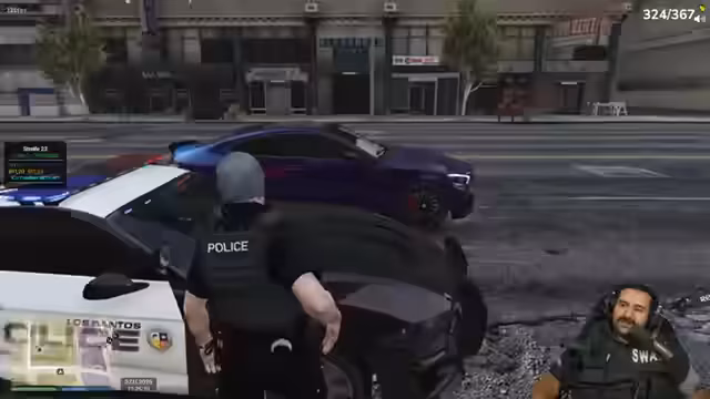 08:50:35Der Streamer beklagt massive technische Probleme innerhalb des Spiels. Er kann sein Fahrzeug nicht mehr steuern, ist gefangen und kann nicht aussteigen. Gleichzeitig versucht er, über einen Dispatcher (einen internen Polizeifunk) Verstärkung anzufordern, um eine verdächtige Person festzunehmen. Die Situation wird durch die unkontrollierbaren Bewegungen des Fahrzeugs erschwert, während gleichzeitig Befehle übermittelt werden müssen, um die dienstliche Pflicht zu erfüllen, was zu chaotischen und komischen Ergebnissen führt.